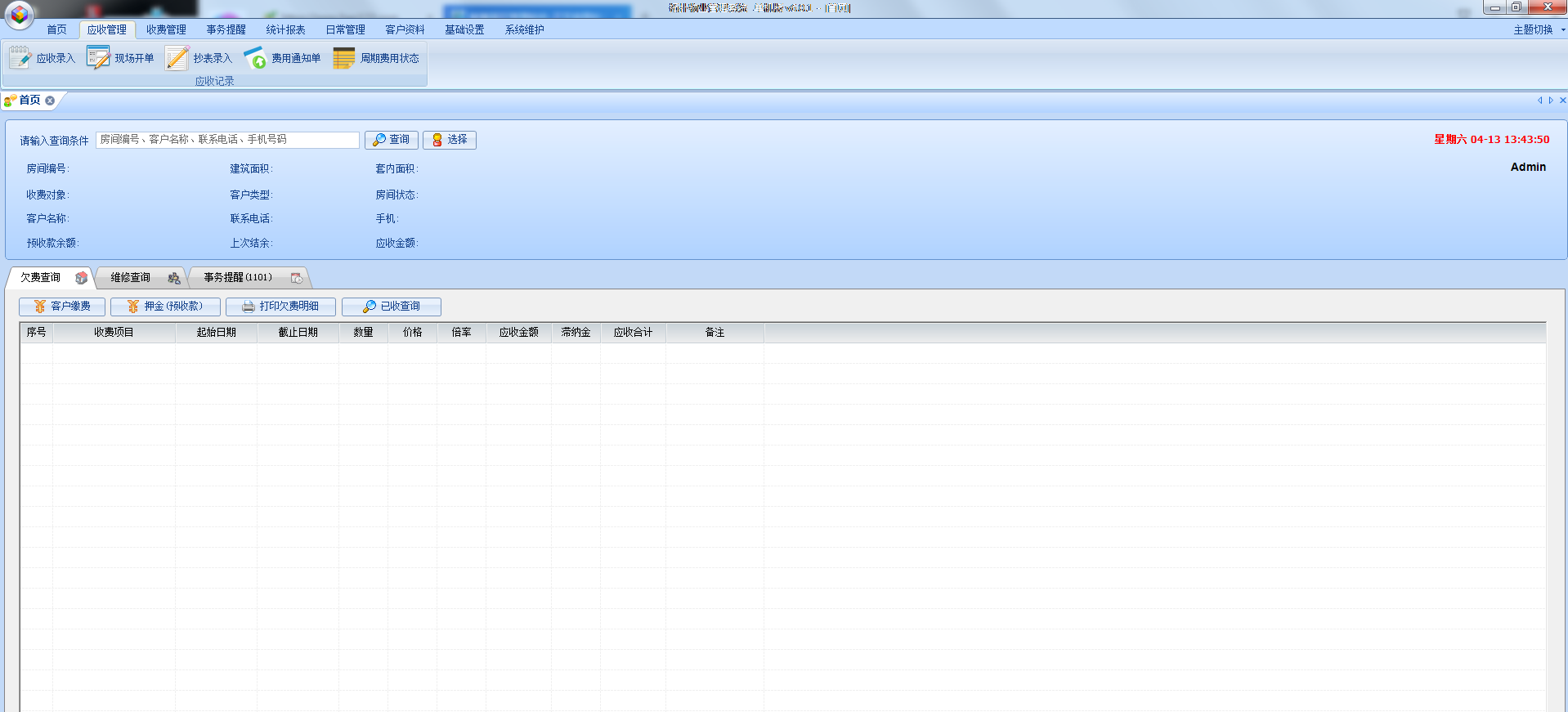 5.可为每种业主类型设置不同的收费项目和不同的价格,也可以按房间设置收费项目和价格,每笔收费明细永久保存并可查。